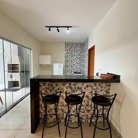 The Bonito property is equipped with a fully furnished kitchen and provides a refrigerator, an oven, and glassware. Guests can dine in Senadinho Lanches, only a few steps from the holiday home.